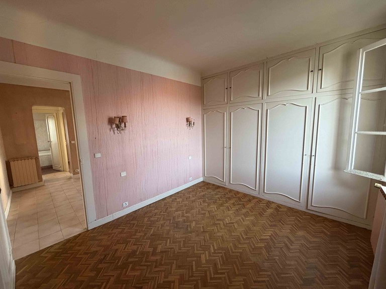 Une chambre avec placard servant actuellement de bureau.
