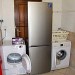 Buanderie avec chaufferie avec lave linge, sèche linge et second réfrigérateur combiné avec congélateur.