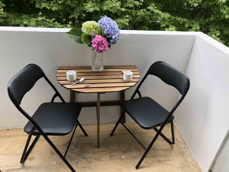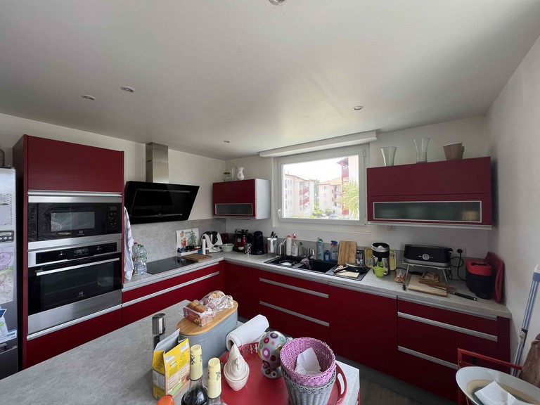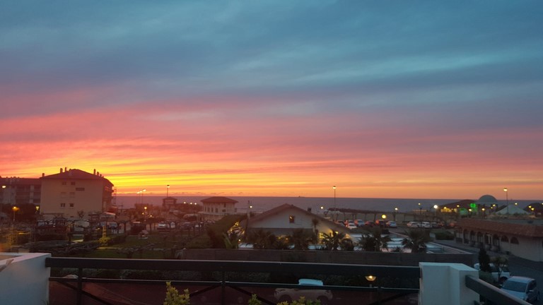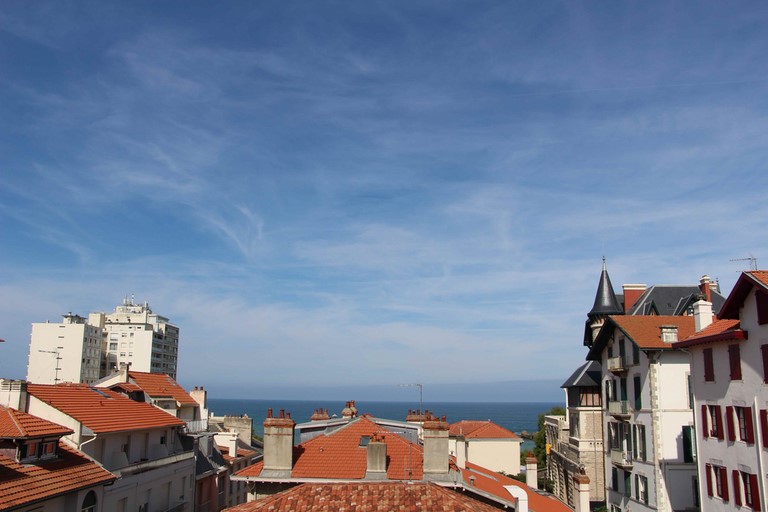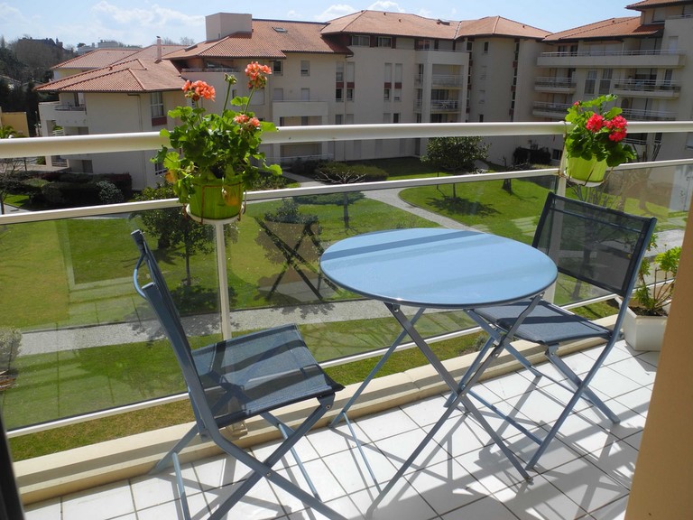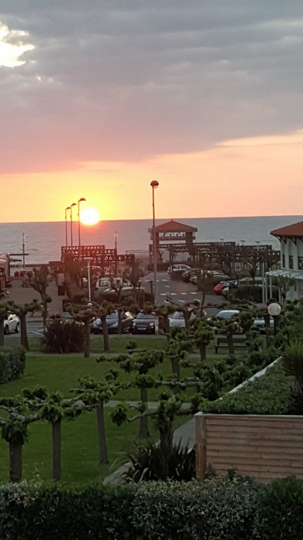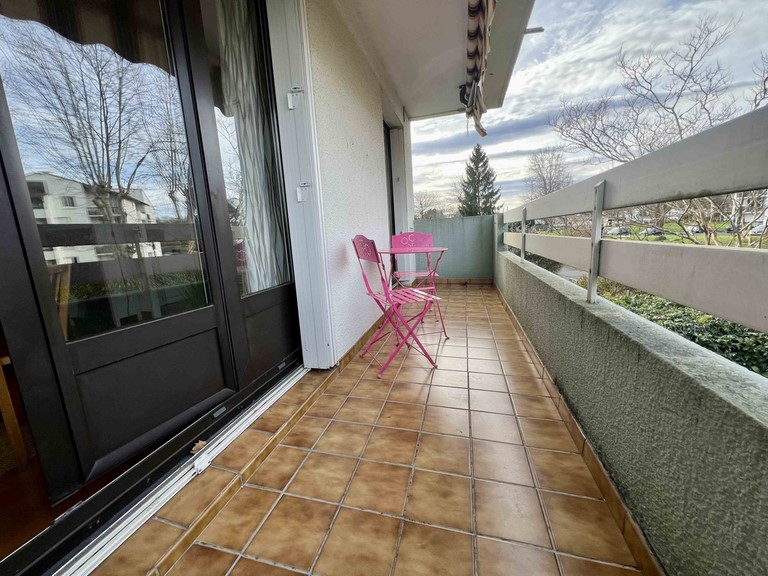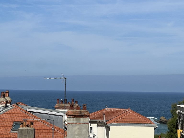Belle vue dégagée sur la ville et sur la Rhune depuis la terrasse.