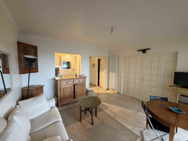Séjour lumineux avec accès terrasse. Belle vue sur la plage.