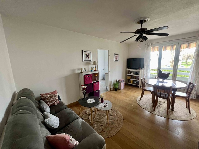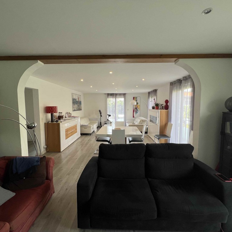 Séjour / salle à manger donnant sur terrasse exposée Sud.
