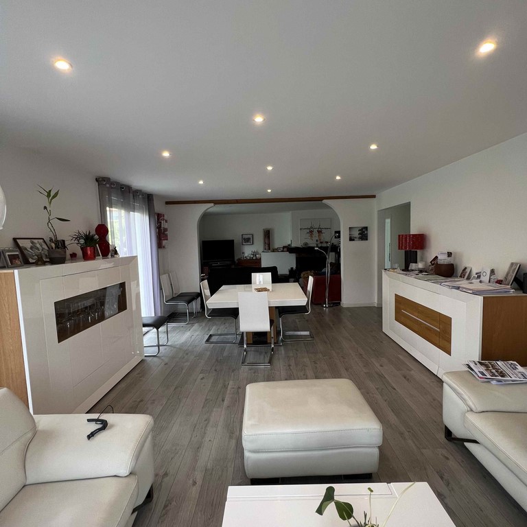 Salon – Séjour de 41m² avec grande cuisine ouverte et équipée.