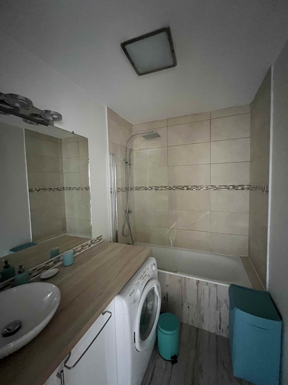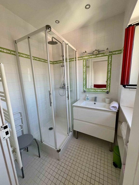 Salle d’eau avec w.c. et lave linge. Accès second balcon.