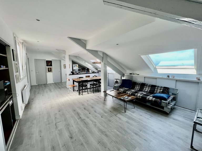 Surface Habitable : 64m² environ avec la mezzanine. Surface au sol d’environ 43m². Belle mezzanine de 21m² environ avec 1,60m de hauteur sous plafond. Hauteur sous plafond dans l’appartement de 3,63m.