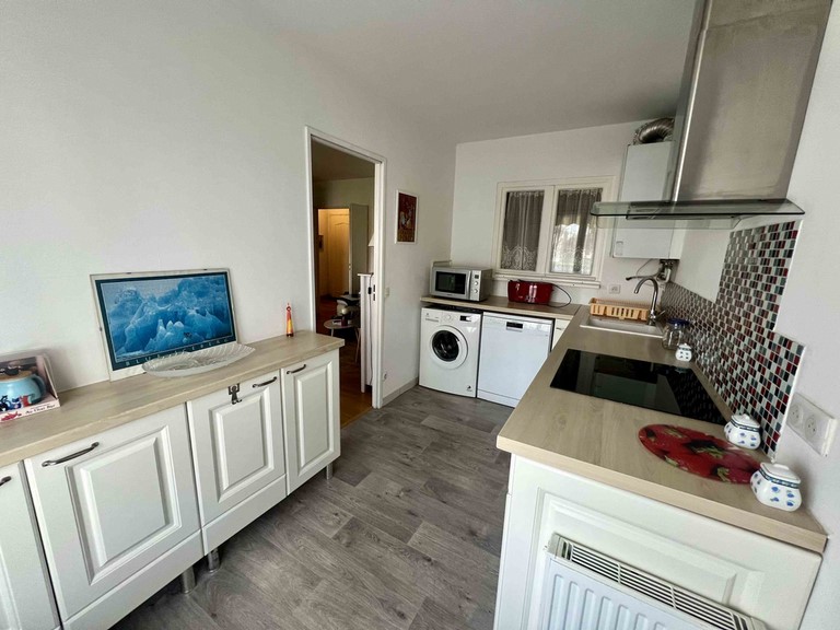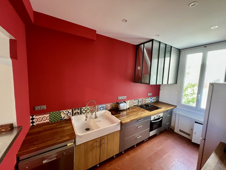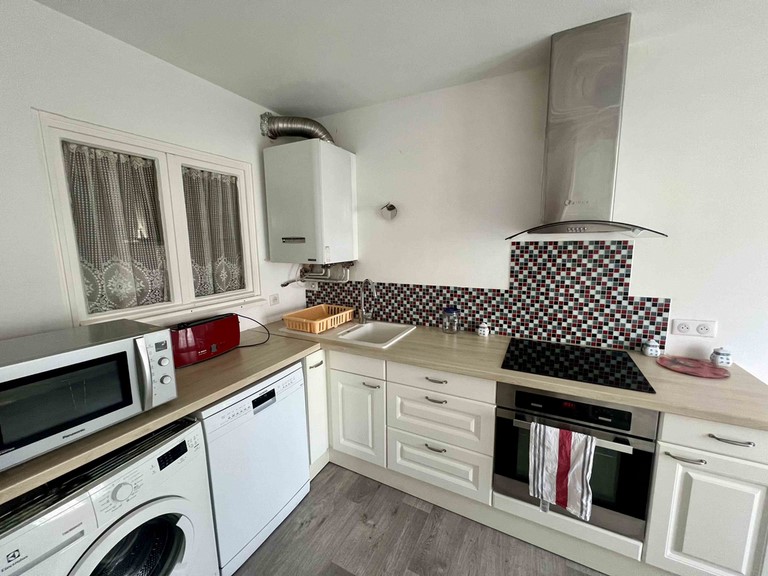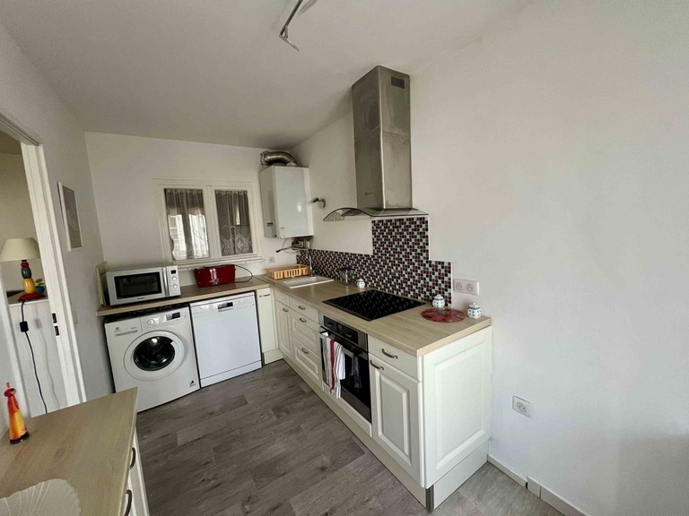 Cuisine séparée et équipée donnant sur terrasse exposée Sud.